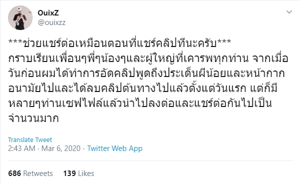 ด้วยการที่คุณหมอได้ลบคลิปต้นทางออก และวอนทุกคนที่ดูดคลิปไป