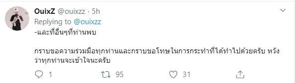 "กราบขอความร่วมมือทุกท่านและกราบขอโทษในการกระทำที่ได้ทำไปด้วยครับ หวังว่าทุกท่านจะเข้าใจนะครับ"