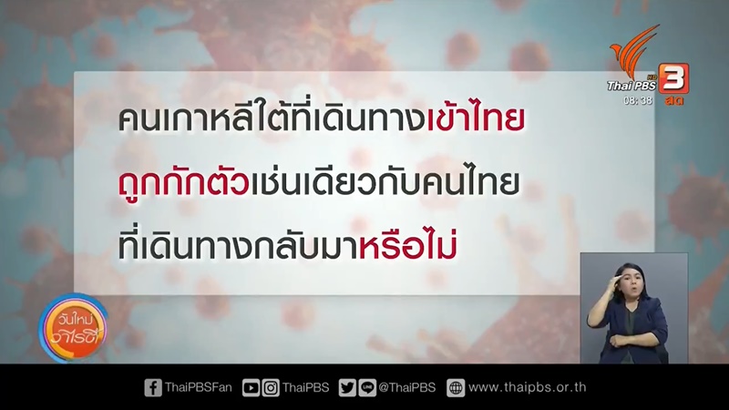 รัฐมนตรีช่วยว่าการกระทรวงสาธารณสุข เผยนักท่องเที่ยวชาวเกาหลี หรือคนที่มาจากประเทศกลุ่มเสี่ยงโรค COVID-19 มาไทย จะต้องกักตัว 14 วัน เช่นเดียวกับผีน้อย ห้ามออกไปเที่ยว ต้องอยู่แต่ในโรงแรม