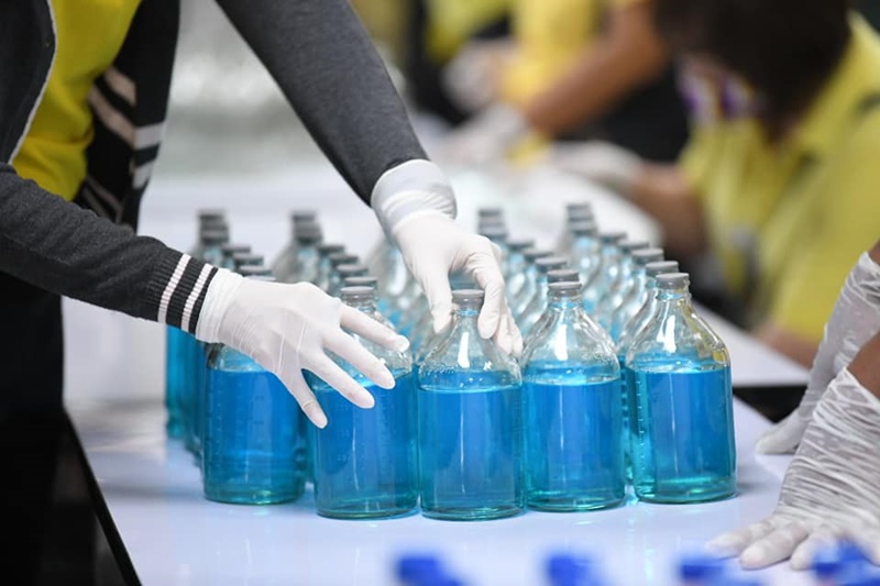 ผลิตแอลกอฮอล์ล้างมือสูตร 80% จำนวน 8 แสนขวด ขวดละ 200-250 มิลลิลิตร ซึ่งน่าจะเพียงพอต่อการใช้คนละ 1 เดือน และในวันพรุ่งนี้ (20 มีนาคม) ก็เตรียมแจกจ่ายให้ประชาชนกว่า 2,000 ชุมชน ในกรุงเทพฯ ได้แก่