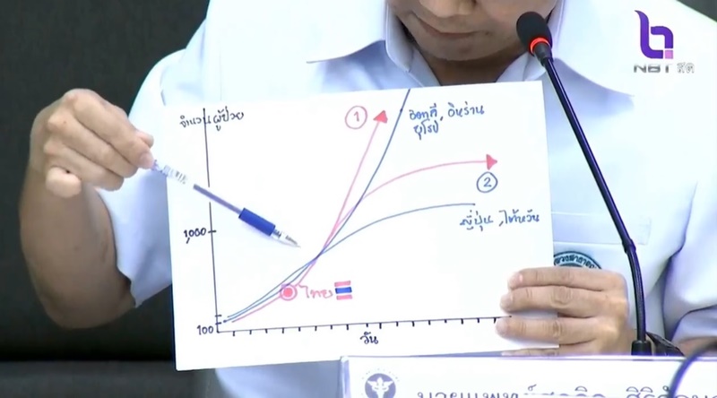 นพ.ศุภกิจ อธิบายว่า แต่ละประเทศถ้าแตะ 100 รายเมื่อไหร่ ยอดจะวิ่งไวมาก แต่ก็แบ่งออกเป็น 2 กรณีอีก คือ