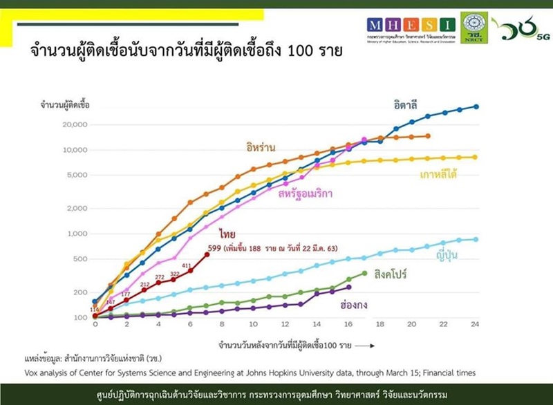 จำนวนผู้ติดเชื้อนับจากวันที่มีผู้ติดเชื้อ 100 ราย
