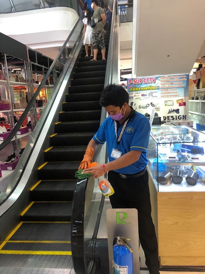 3. ฉีดสเปรย์ฆ่าเชื้อในลิฟต์โดยสาร และห้องลองเสื้อผ้า ทุก 1 ชั่วโมง